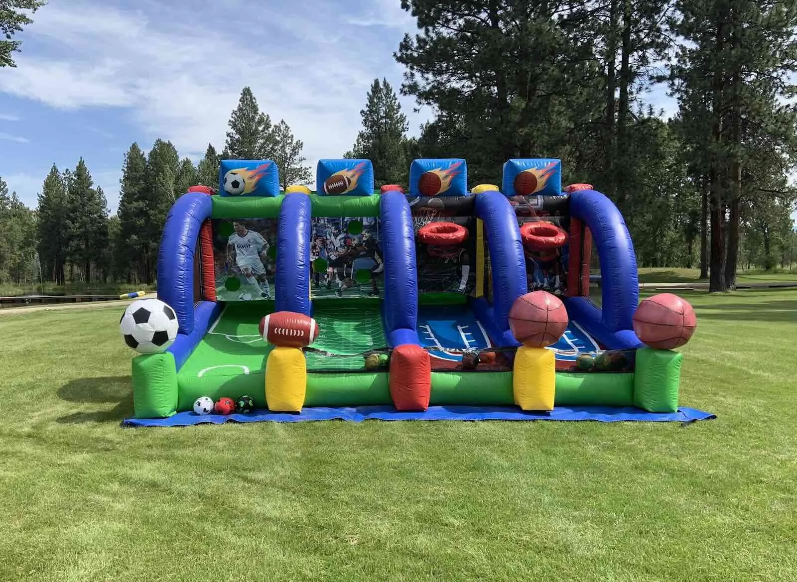 Ready to find out who the real MVP is? The 4-in-1 Sports Shoot Out brings the stadium experience right to your event. This isn't just a bounce house—it’s a high-energy competition hub where you can challenge your friends across four different sports. Whether you’re a striker, a quarterback, or a point guard, there’s a lane waiting for you to claim victory. Comes with balls.