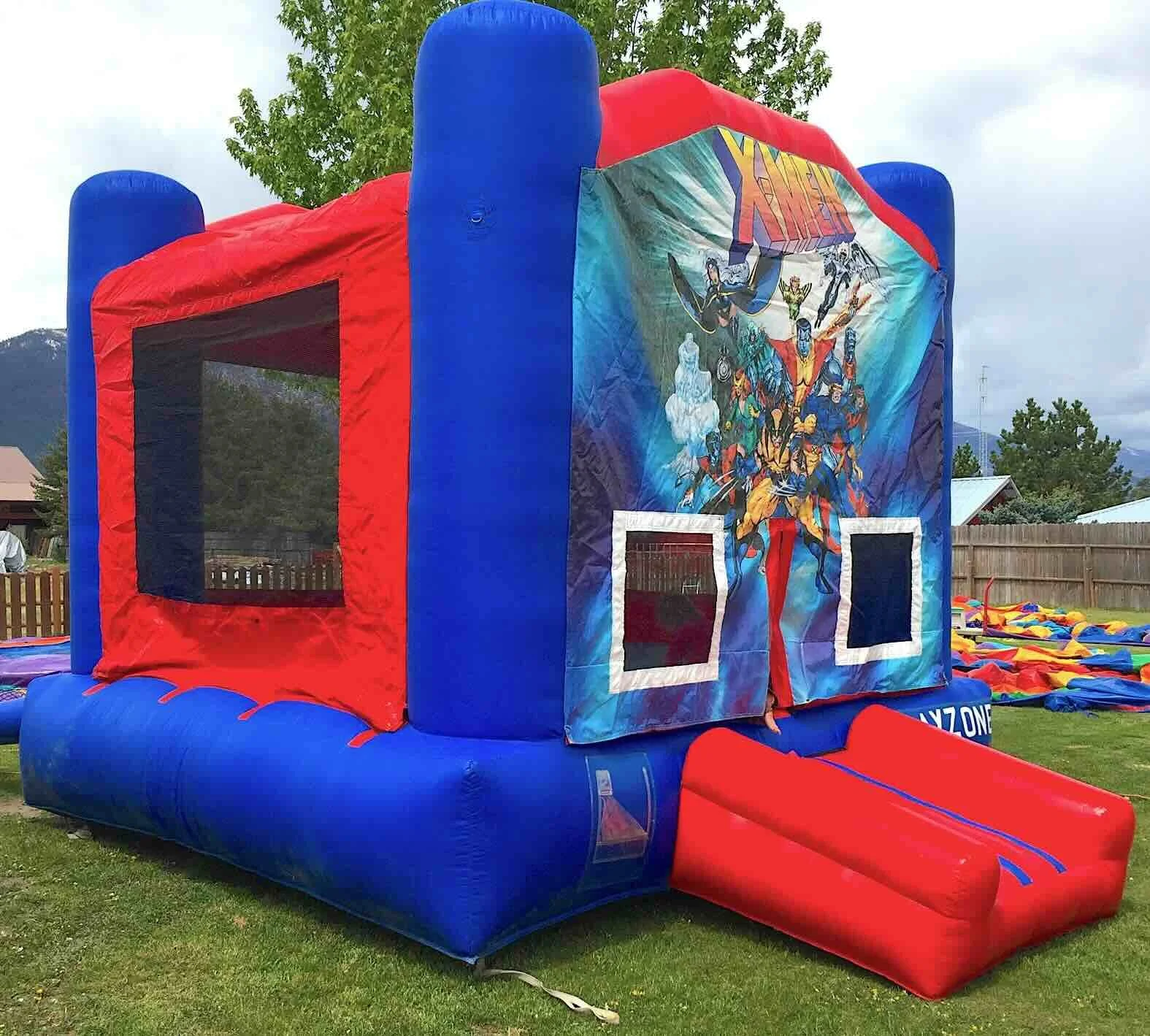 Retract your Wolverine claws and unleash your inner mutant! With this unit's integrated shade cover, heroes can train all day long without overheating in the sun. The X-Men Bouncer is the ultimate training ground, inviting kids to jump and soar alongside their favorite comic book heroes in a vibrant, high-energy environment.